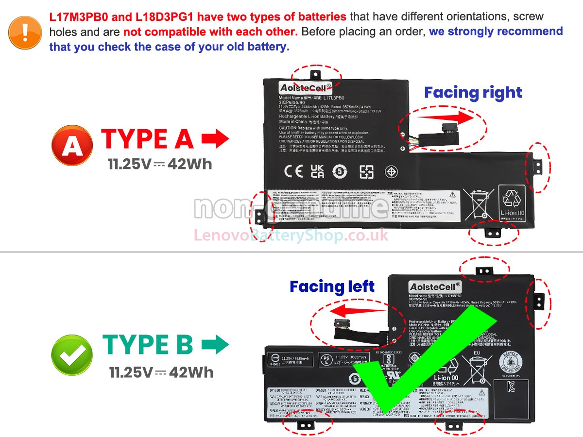 There are 2 types battery, before placing an order please open your laptop to check your old battery first, ensure it's the same as ours. 3 cells 42WhBattery for Lenovo Chromebook S340-14