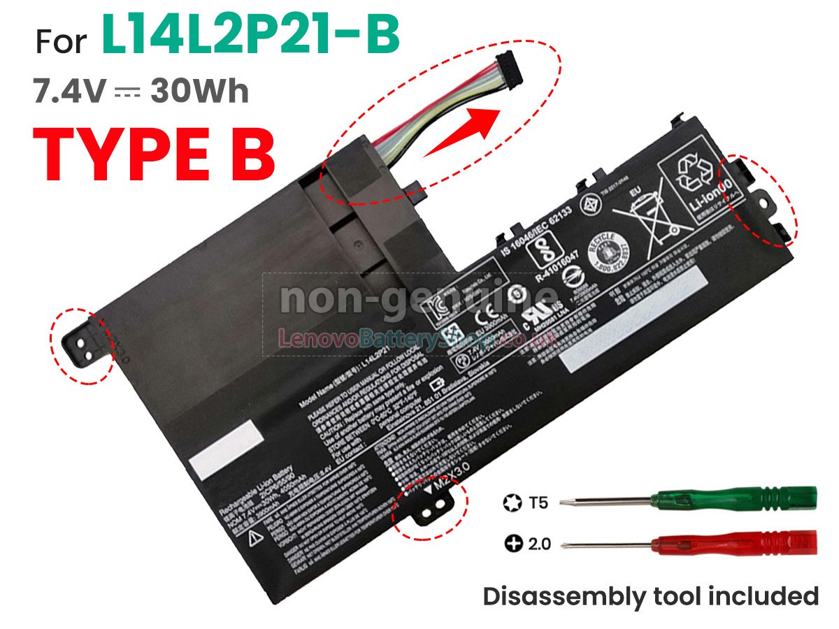 Before placing an order, please open your laptop to check your old battery first, ensure the screws and connector position is same as ours. 4 cells 30WhBattery for Lenovo L14M2P21